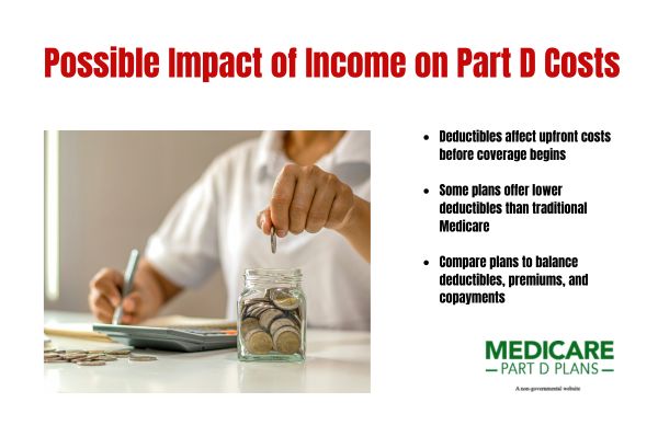 Not all plans have the same deductible. Some Medicare Part D plans may offer lower deductibles compared to traditional Medicare, possibly allowing for lower upfront cost options for enrollees.