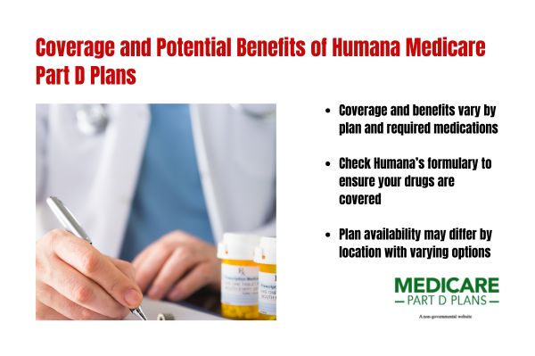The potential coverage and benefits of Humana Medicare Part D plans may vary significantly based on the specific plan selected and the medications needed. Reviewing your current medications and checking if they may be included in Humana’s formulary is crucial to ensure you get the coverage you need.
