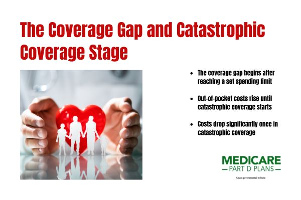 The coverage gap, or donut hole, in Medicare Part D is a period where beneficiaries might experience higher out-of-pocket drug costs until they reach catastrophic coverage, which could potentially reduce their expenses. It’s important to be aware of this phase to manage your prescription drug costs effectively.