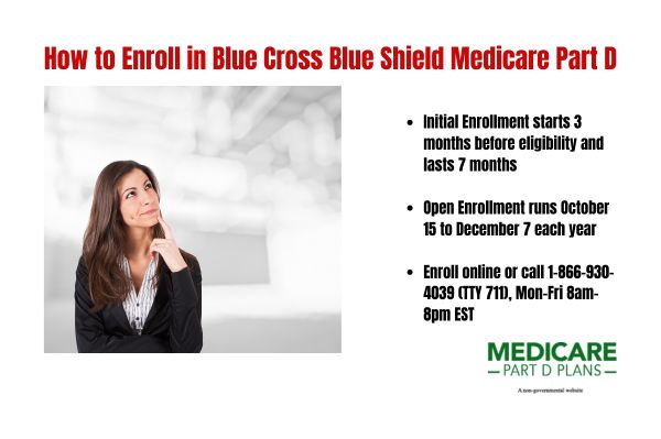 The enrollment process for Blue Cross Blue Shield Medicare Part D is straightforward if the specified timelines are followed: